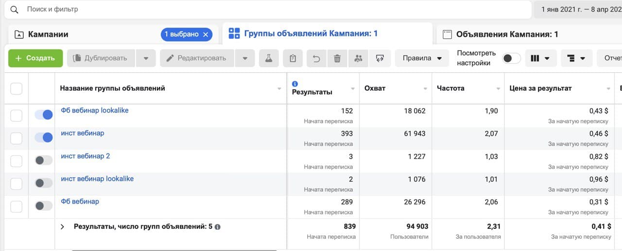 1 год, это результаты по одной из рекламных кампаний