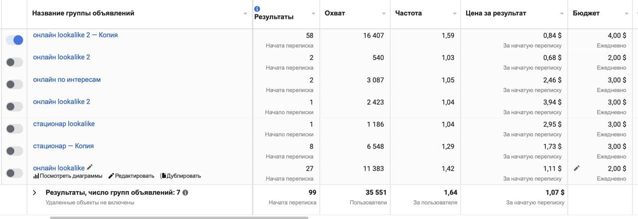 Ведём рекламу в Инстаграм с целью «сообщения». Аудитория lookalike и по интересам.